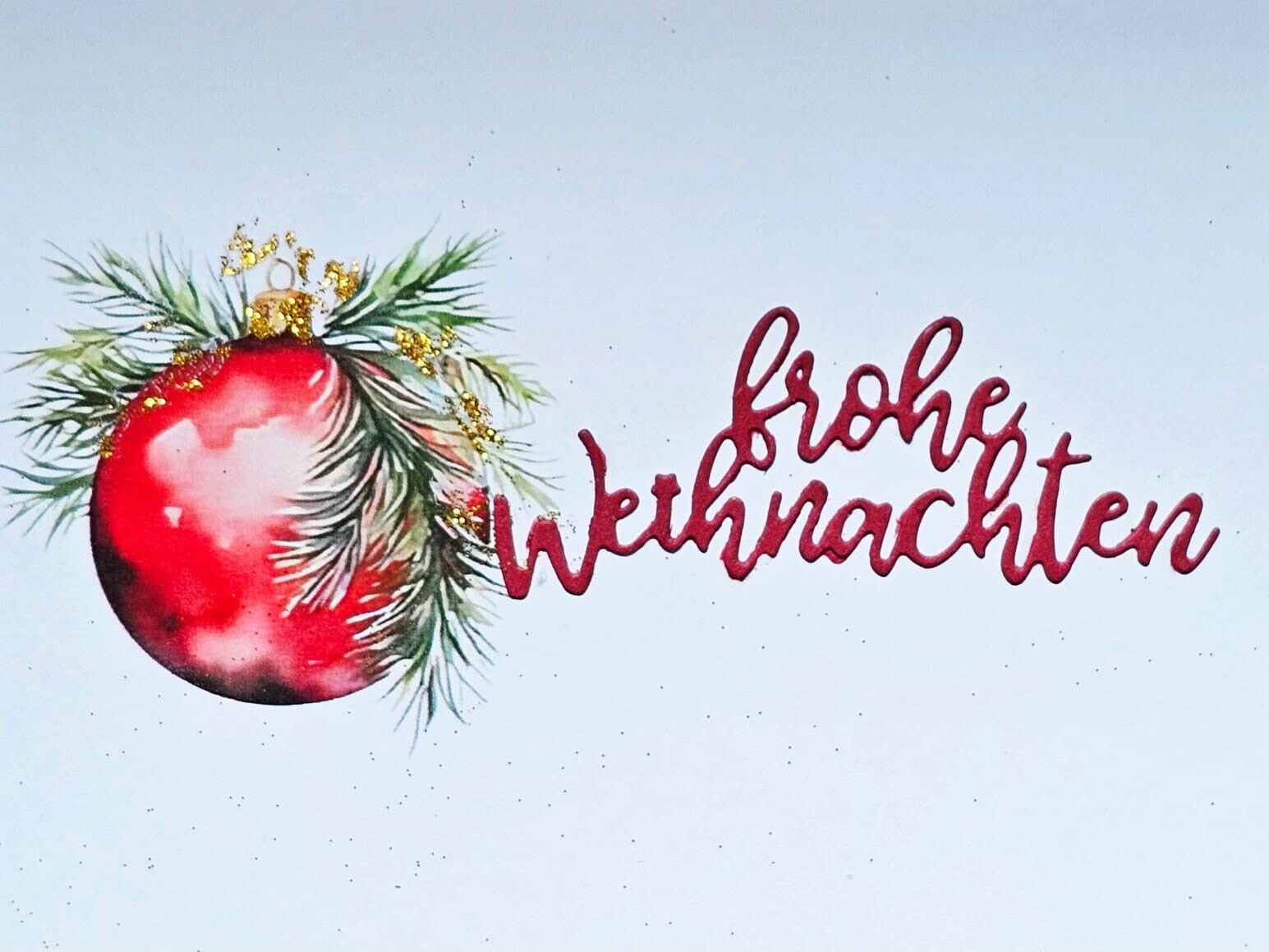 Weihnachtskugel "frohe Weihnachten" rot glitzer (A6 quer)